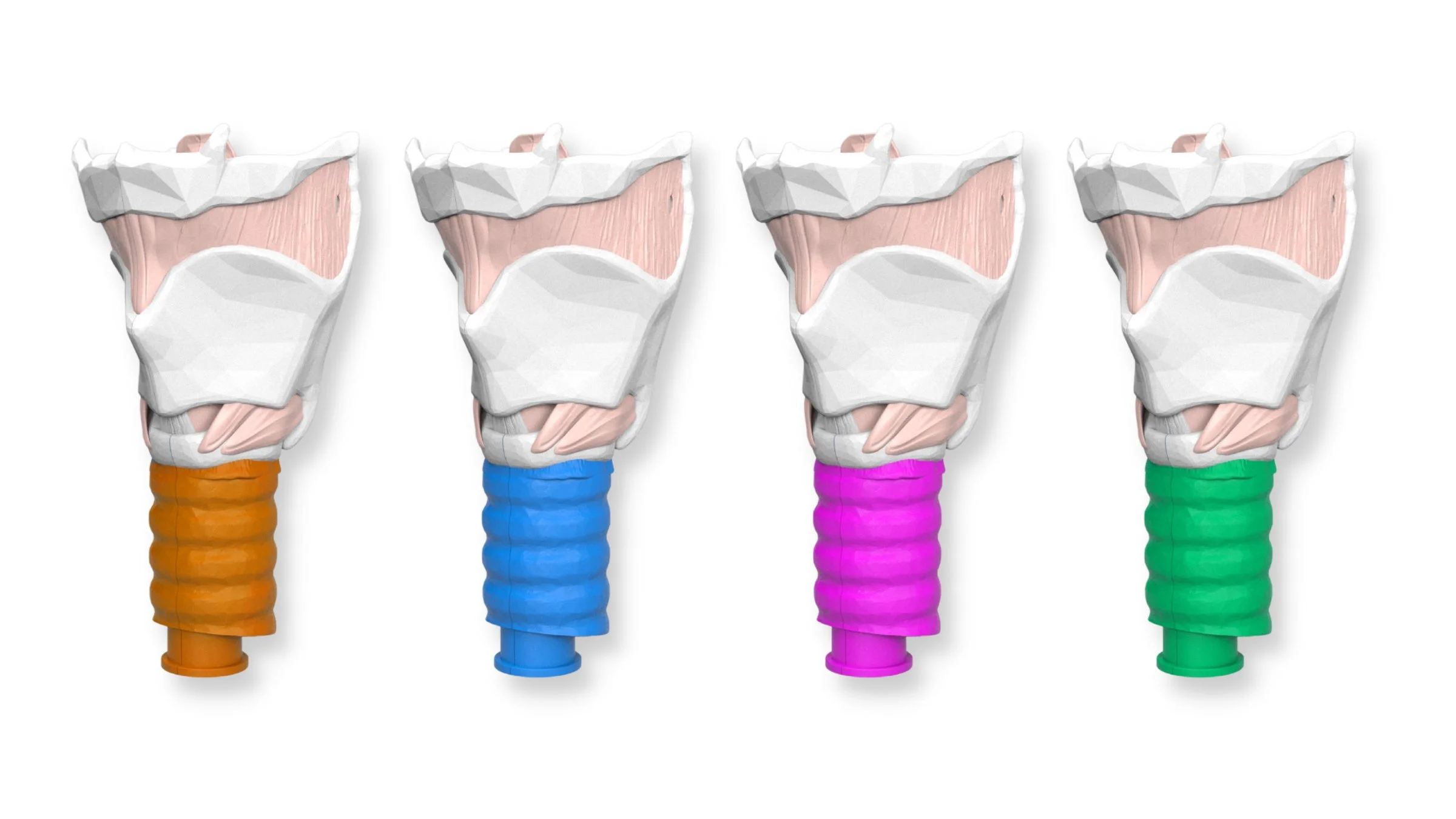 The Esophagus is designed to hold the Larynx in display mode. The Stand and Larynx are removable from the Esophagus to allow for easy storage.